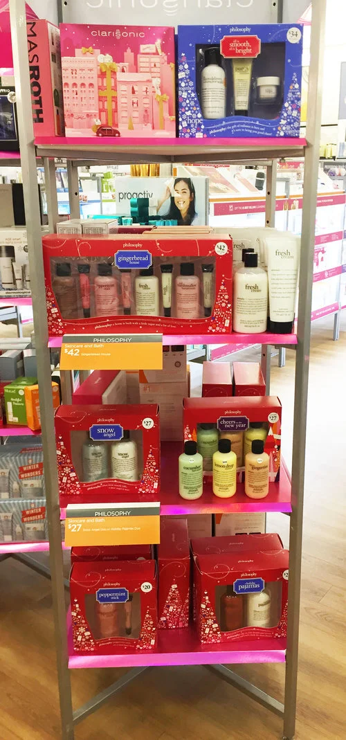 Holiday is Philosophy’s largest program, sold across Sephora, Ulta, and Macy’s, often with retailer-exclusive SKUs and custom designs.